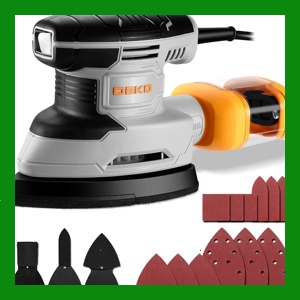 상세 샌더 DEKO 다기능 마우스 전기 도구 코드 팜 샌더스와 집진기 샌딩 광택 집에서 페인트 제거를 위한 추가 부착물 3개 및 12 사포