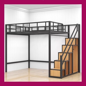 소형 가족용 로프트 침대 공간 절약형 철제 프레임 테이블 아래 2단 계단 수납장이 있는 높은